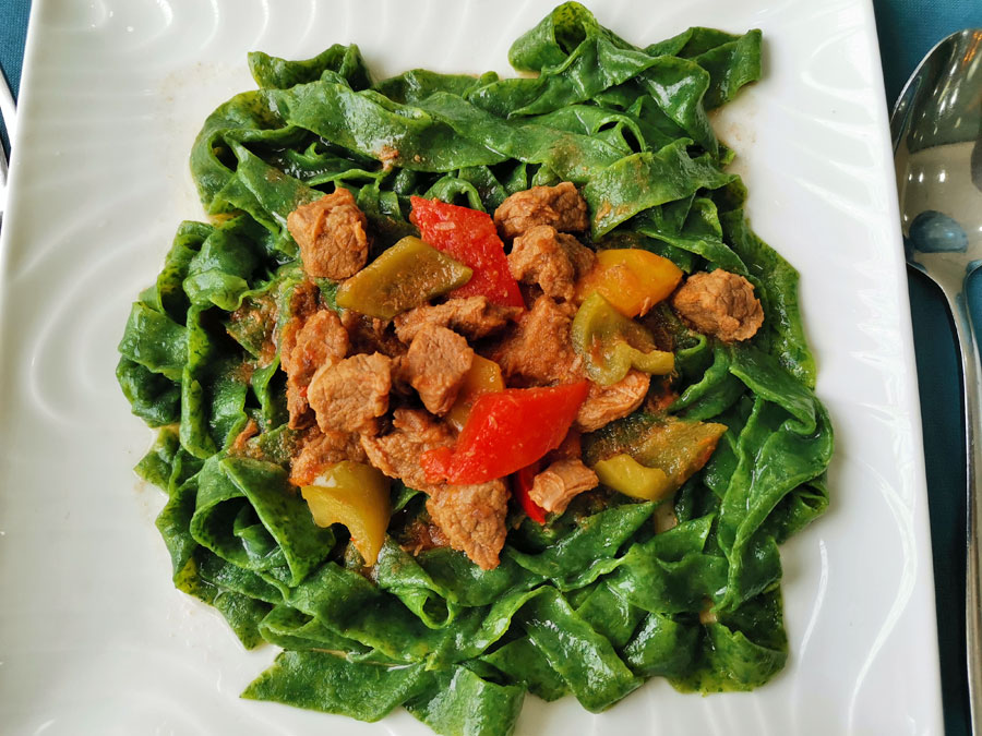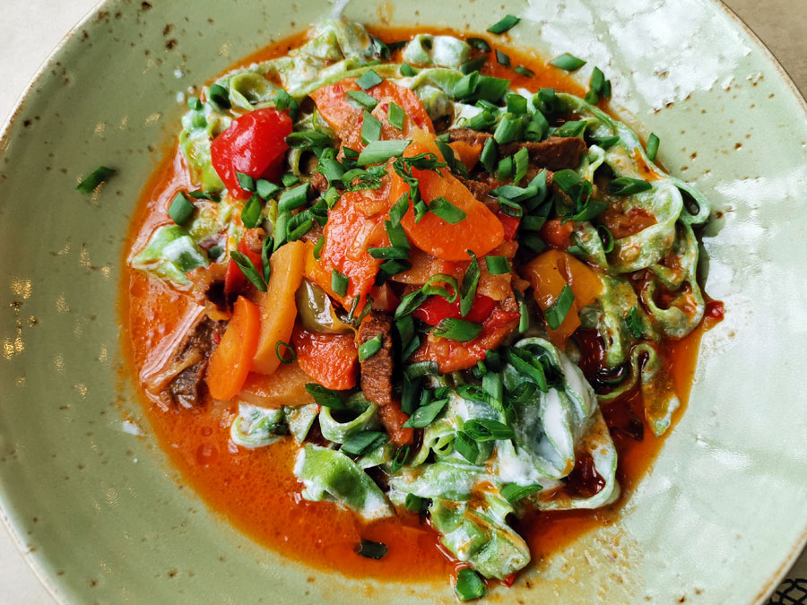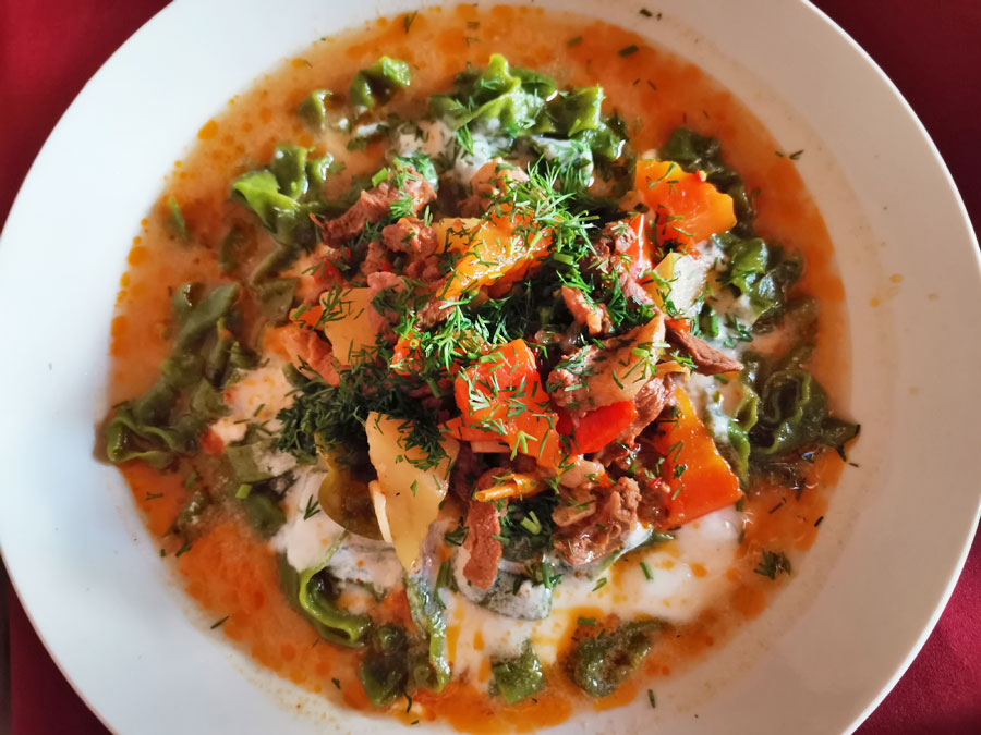 ホラズム地方の名物料理で、香草ディルが練り込まれた緑色の麺。どことなくイタリアンな趣の料理。お店は限られていますが、タシケントでも食べることができます (⇒過去記事)。個人的にはこれもかなり好きな料理。