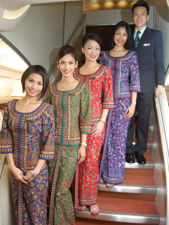 サロンケバヤ (Sarong Kebaya) は、世界でもっとも象徴的な客室乗務員の制服のひとつ。1970年代にピエール・バルマンによってデザインされて以来ほとんど変わっておらず、それが魅力のひとつでもある。それぞれの色が乗務員の階級を示し、全体的なデザインはエレガントで細部にまでこだわり、伝統を尊重している。このデザインは柔軟性よりもフォーマルさを重視しているが、航空会社のアイデンティティをしっかりと支えている。